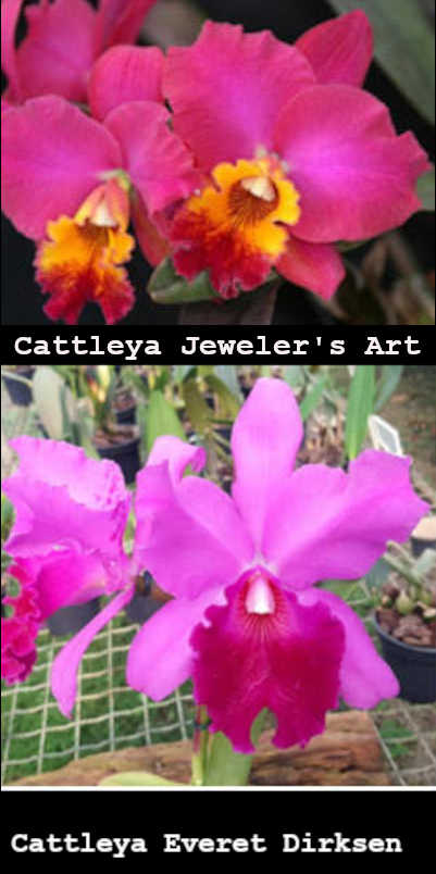 This plant is in a 6" pot and blooming size. The parents of this cross are Slc Jewlers Art x Lc Everest Dirkensen. The flower picture shows the parents of the cross. The plant picture is of the actual plant we are selling.