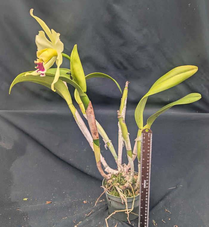 This plant is in a 6" pot and blooming size. The picture is the actual flower of these plants, this is a meristem. The other picture is of the actual plant we are selling. The plant will ship without flowers.