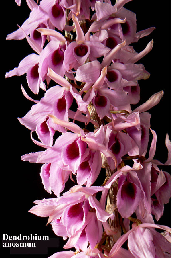 This plant is overgrown in a 3" basket and  blooming size plant. This is a deciduous Dendrobium that blooms in the spring and smells really good. The flower pictures are of a typical flower for the species. The plant picture is the actual plant we are selling.