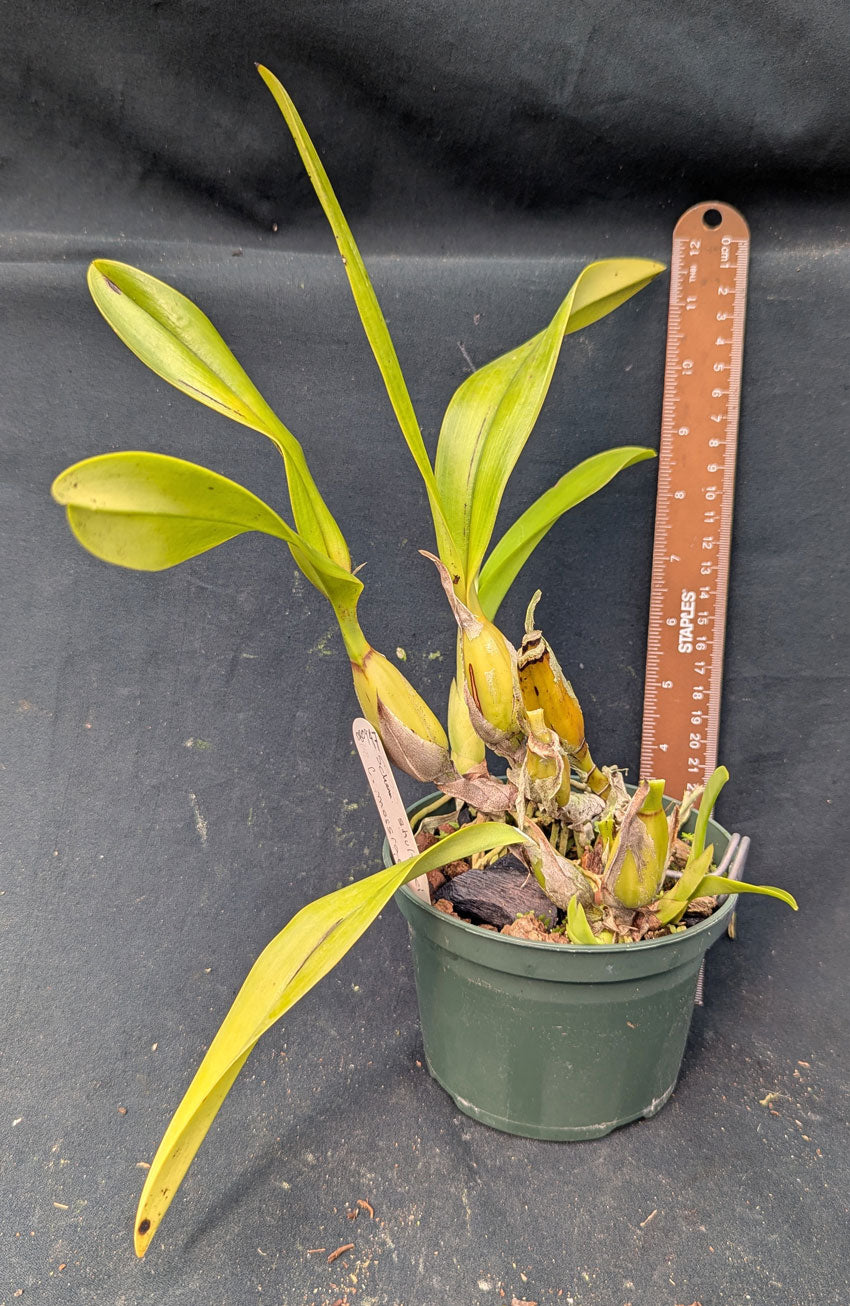 This plant is in a 5 " pot about 2 years to bloom. Flower picture is of a typical form for the species the plant picture is of the actual plant we are offering.