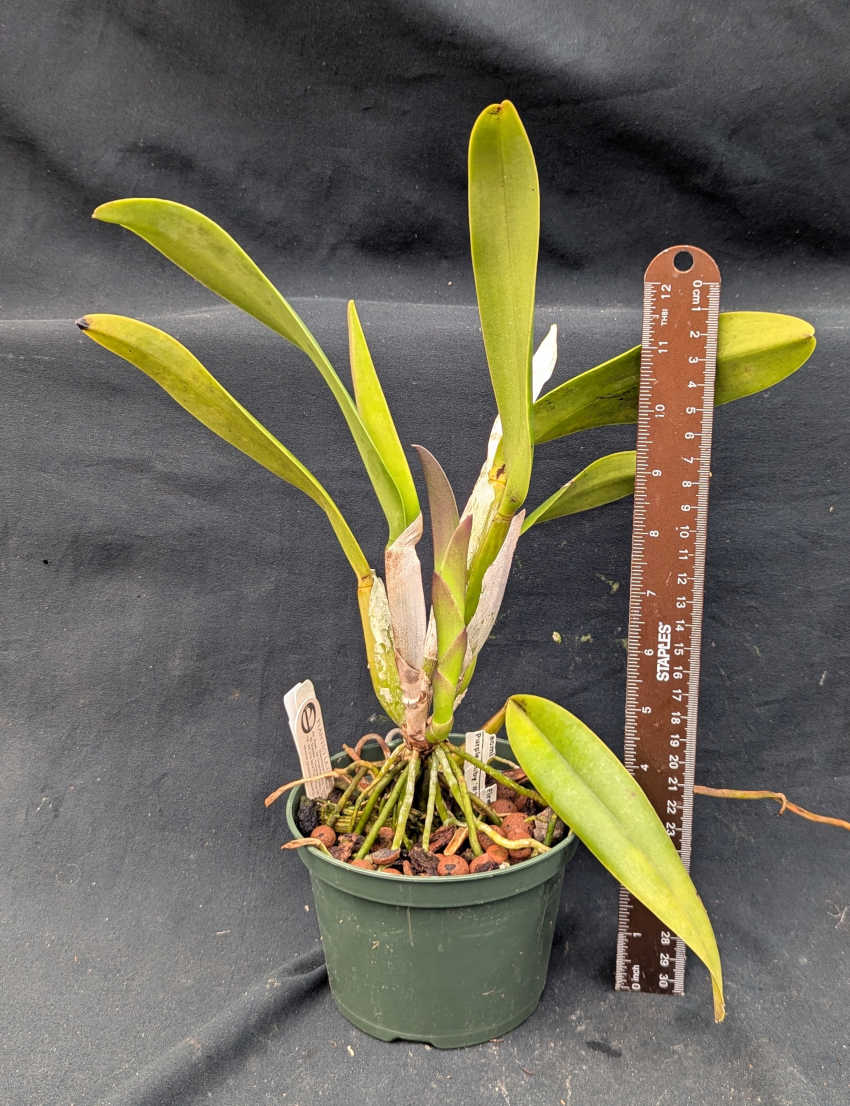 This plant is blooming size and growing in a 5" pot. The flower pictures are of a sibling plant the actual flowers will be similar but not exactly like this, the plant picture is of the actual plant we are selling. This is not a meristem but a unique result of a cross.
